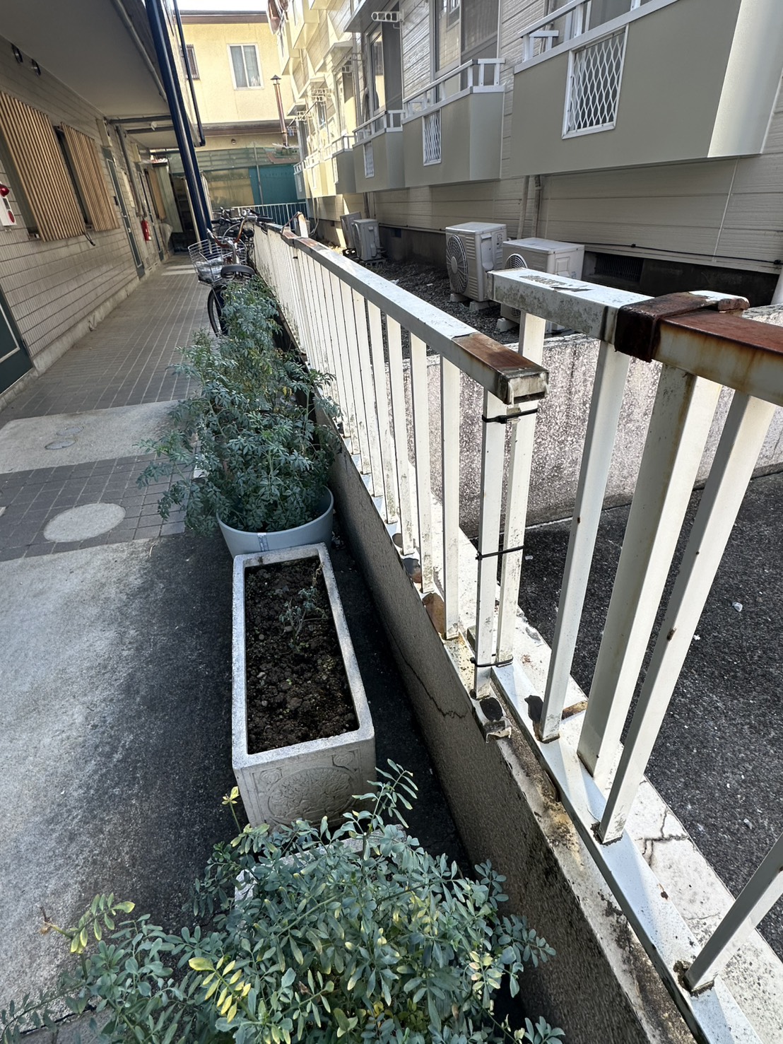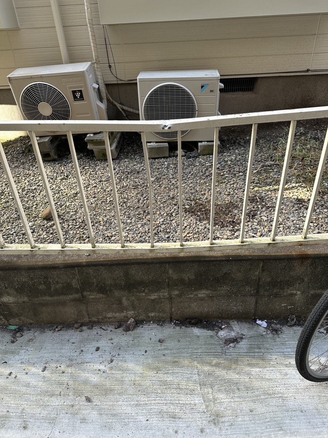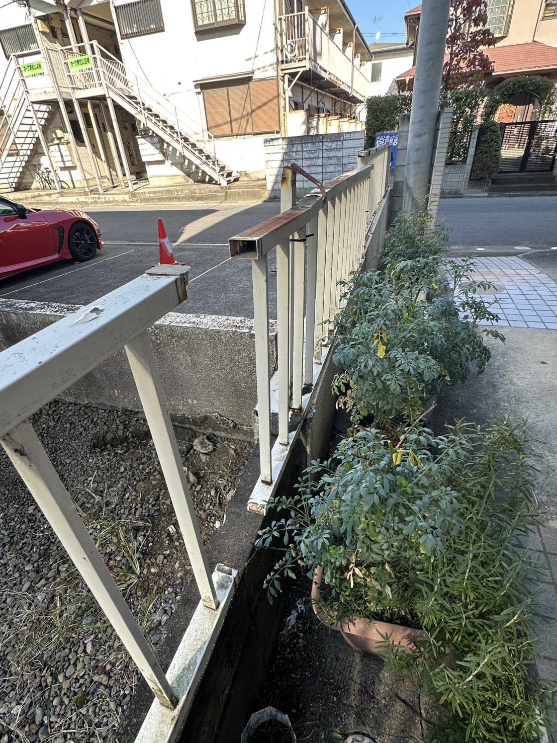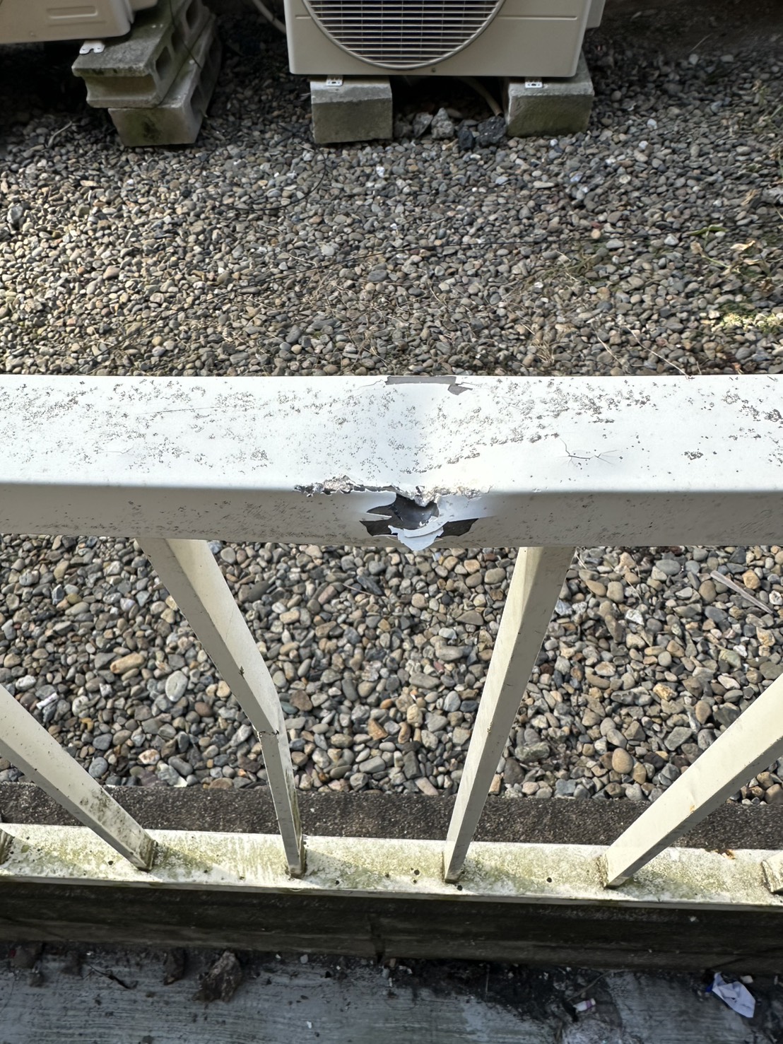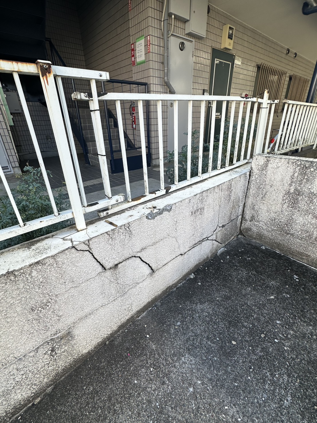 あるマンションで、1階住戸の玄関側フェンスが破損する物損被害が発生しました。